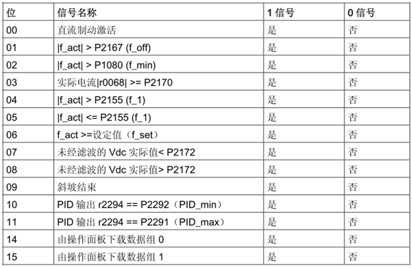 V20系列变频器的参数r0053是第二个状态字,r0053有16个状态位分别代表变频器不同状态。