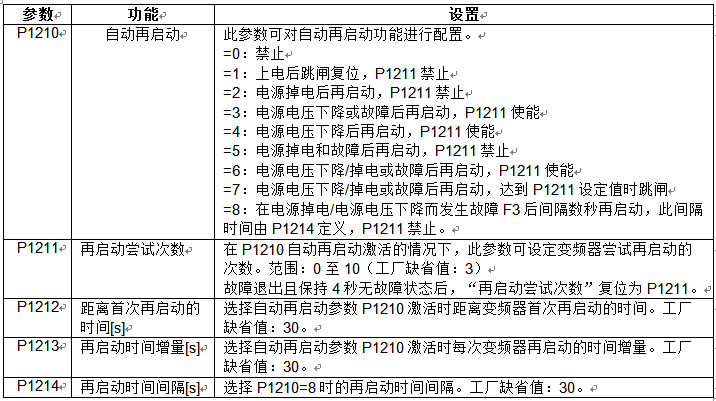 要求因电网波动报F3故障停机后,变频器自动再启动,参数设置如下: