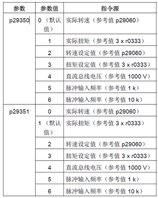 通过 p29350(选择 AO1 的信号源) 和 p29351(选择 AO2 的信号源),这两个参数可选