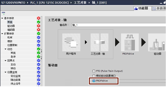 "驱动器"选择"PROFIdrive" :