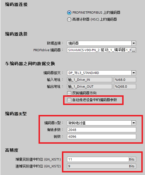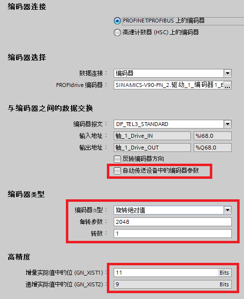 检查在“与编码器进行数据交换”处是否勾选了“自动传送编码器参数值”,如果勾选了请取消,手动输入编码器参数。