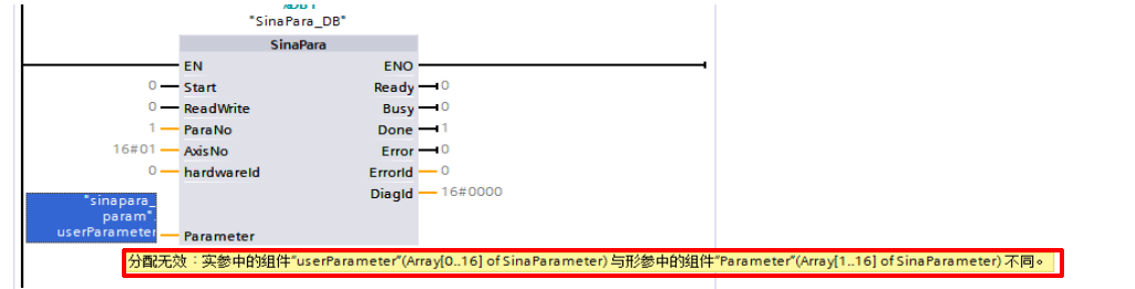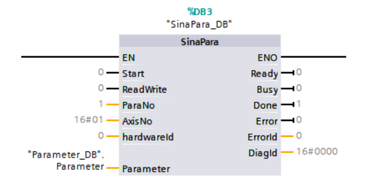 博途V16中1200/1500PLC可以通过Sina Para功能块对驱动参数进行读写操作,此功能块可以读取或写入参数多达16个。比以前的SINA_PARA FB286增加了Parameter参数管角,使用起来更加方便。