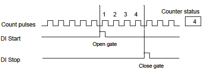 Edge-Controlled Opening and Closing of the Hardware Gate: 由DI start和DI stop复合控制计数起停,DI start上升沿信号到来是打开硬件门,DI stop上升沿信号到来是关闭硬件门: