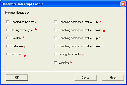 回到参数设置中,双击“Hardware Interrupt Enable”,进一步设置每个计数器通道的硬件中断条件。