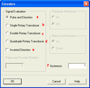 注意:当选择旋转编码器时,应在“Pulses per Encoder Rotation”下方填写编码器每旋转一圈产生的脉冲个数。