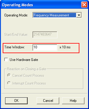 d: 频率测量,在此模式下,FM350-2模块会统计设定时间(Time Window)内脉冲个数,从而计算脉冲频率。