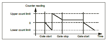 c: 周期计数,门接通时,计数器在用户设定的高低限值之间计数。