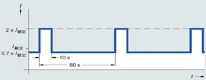 S120的各个模块的过载能力请参考选型手册PM21_2013_Complete_chs中的参考数据和过载曲线图。以S120的电机模块为例说明,图1-1是S120模块的负载周期的示例:
