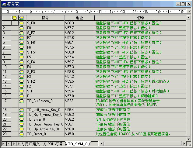 注意:TD 400C 不需要用户为功能键(F1-F8)分配地址,向导将自动为其分配V区的地址。如果用户重新修改了向导,可能会引起已分配的功能键地址的改变,用户在逻辑编程时需加以注意