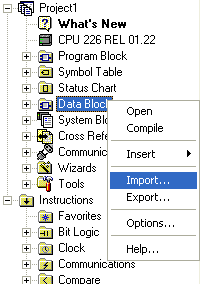 在树形目录中选择Data Block(数据块),在File(文件)菜单中,或者在鼠标右键的快捷菜单中选择Export...(导出)或Import...(导入)。数据块可以导出为文本文件,符合格式的文本文件也可导入成为数据块。