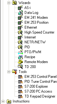 STEP 7-Micro/WIN V4.0以一种“超级树”形的目录结构组织项目文件的资源。与以前相比,4.0版增加了“数据块”、“系统块”、“交叉引用表”的树形访问目录。另外,还把编程向导和调试工具放在指令树中。