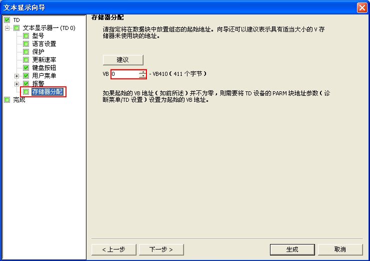 - 用户可以自己分配一个程序中未用过的 V 存储区,也可以点击“建议地址”按钮让向导自动分配一个程序中未用过的 V 存储区地址。