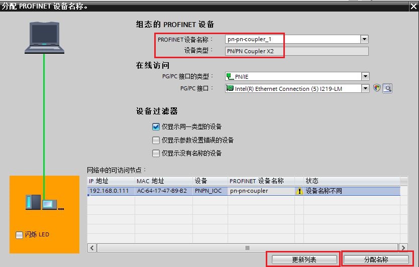 按照如上两个步骤对PN/PN Coupler X2网口分配设备名称。