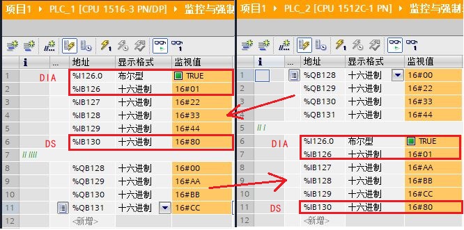本例中CPU1512C-1PN 连接 PN/PN Coupler X1 端,CPU1516-3PN/DP 连接PN/PN Coupler X2 端;