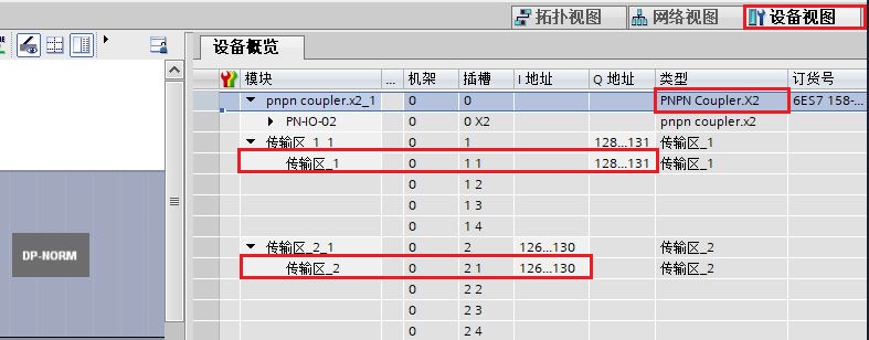 设备视图中,打开右侧“设备概览”,分配传输区的I/O地址;