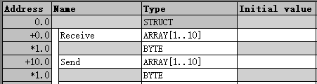 在 S7-400 侧,首先创建用于发送和接收的数据块,定义成 10 个字节的数组,如图 13 所示。
