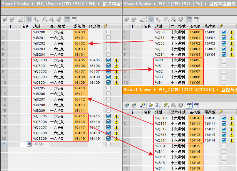 分别编译和加载控制器(PLC_I-Device、PLC_1 和 PLC_2)