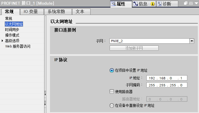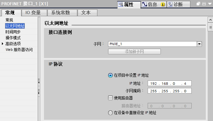 1.3、双击控制器以太网接口进入属性常规界面,为控制器添加子网及设置IP地址,如下图4所示。