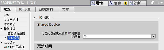 只有在智能设备操作模式中选择“PN接口的参数由上位IO控制器进行分配”后导出的GSD文件中的实时设定选项中才能进行同步设置。