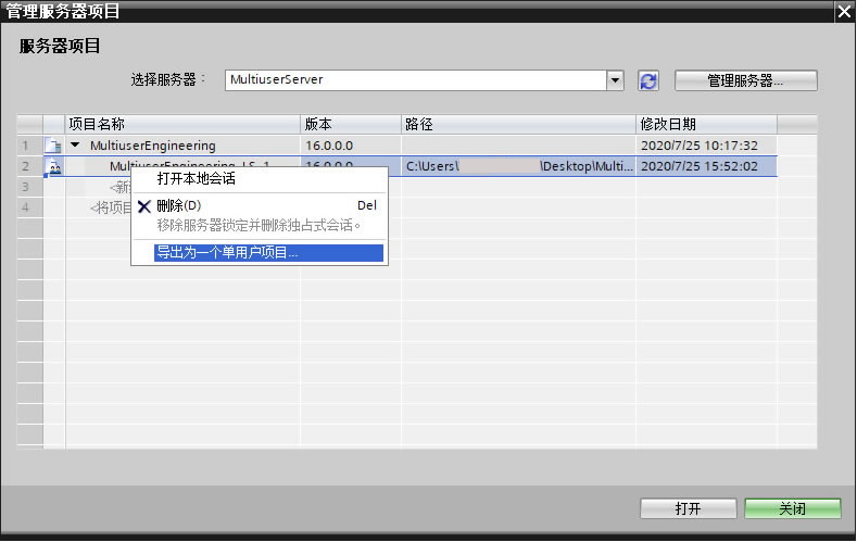 可以通过管理服务器项目把本地会话导出为一个单用户项目,单用户项目下修改的程序块还可以重新拷贝到本地会话或是服务器项目中,如下图 25 所示。