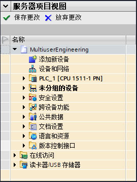 多用户项目的所有对象均可在服务器项目视图中编辑。还可对不支持 Multiuser Engineering 功能的对象进行编辑。