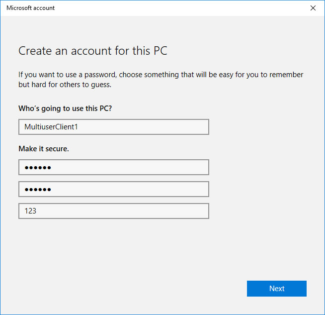 1.2、在项目服务器 PC 上为客户端创建用户账户