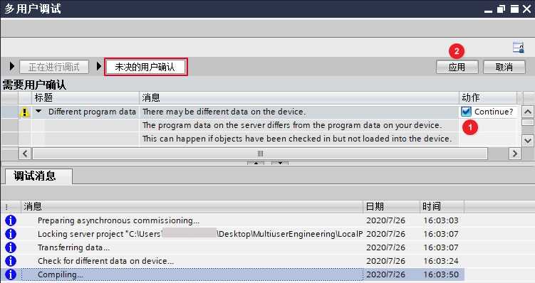 在 TIA Portal V15.1 及以上版本中,可使用 Multiuser Engineering 在 “工程组态模式” 与 “调试模式” 之间进行切换。自 TIA Portal V16 起,Multiuser Commissioning 在 “同步模式” 和 “异步模式” 下均可用。