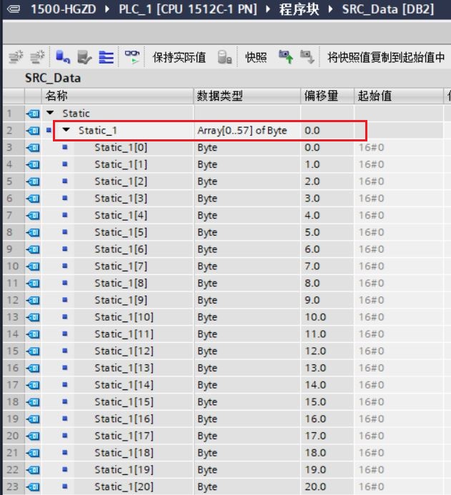 使用该指令要求,创建一个跟目标区域DB一样数据长度的源区域DB。对于源区域DB只要和目标区域DB数据长度一致即可,如图2所示,创建非优化DB块 "SRC_Data" DB2(源DB)。