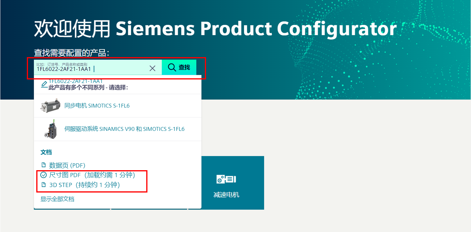 SINAMICS V90及电机的 2D和3D图纸已可以在线查找,在Siemens Product Configurator里进行下载。