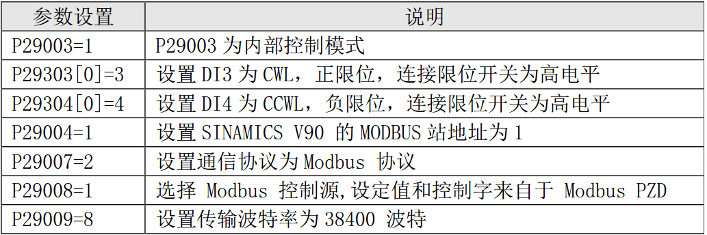 按照下表设置伺服驱动器的相关参数: