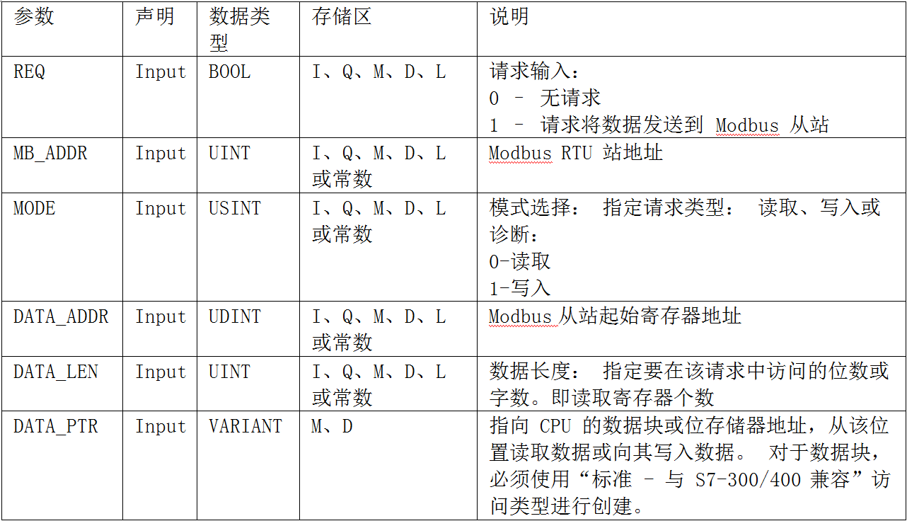 指令"MB_MASTER"的主要参数:
