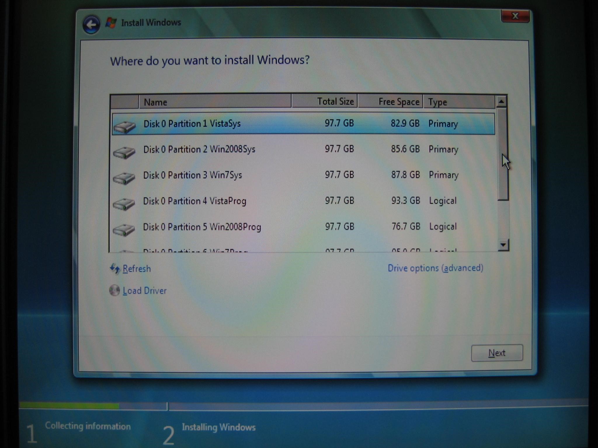 根据需要可以选择相应的分区安装操作系统。
