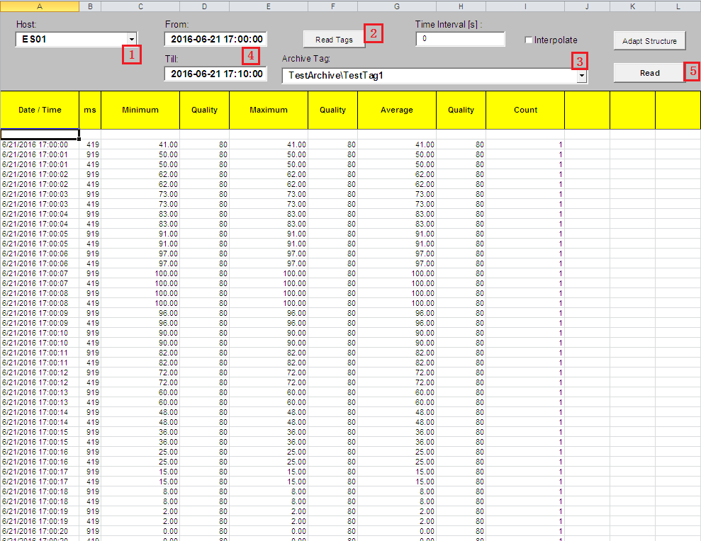 如果不需要读取出时间范围内的所有数据,可以在Time Interval 中填写读取数据的时间间隔。另存为文件,即可保存导出的归档数据。
