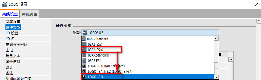 2.打开LOGO设置,将硬件类型修改为LOGO! 8.3后点击确定(图2)