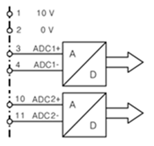 - 10、11号端子:模拟量输入2信号,10-正、11-负。