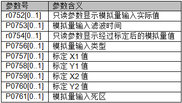 注意:MM430/MM440变频器模拟量输入相关参数均有下标,例如P0756[0]、P0756[1],其中下标[0]的参数设置模拟量输入1的功能,下标[1]的参数设置模拟量输入2的功能。
