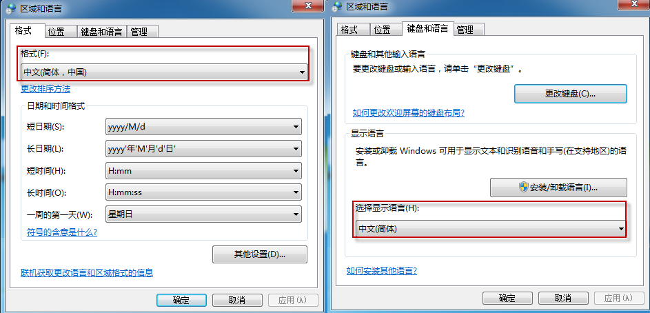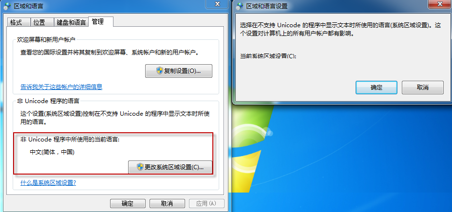 对于PCS 7 欧洲版本将系统区域语言设置为英文,包括format、location、keyboards and language下的display language和Administrative下的language for non-Unicode program;对于PCS 7需要将区域语言设置为简体中文。