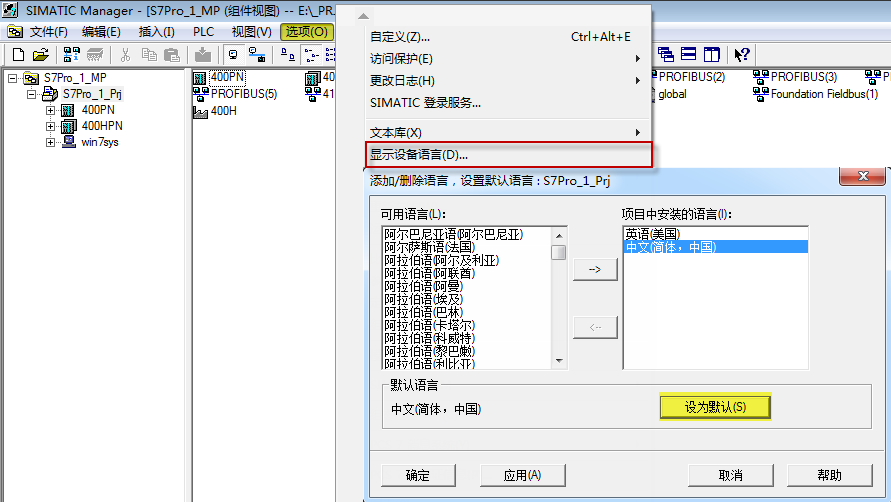 PCS 7项目中如何设置正确的语言选项