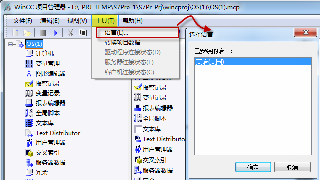 OS语言设置包括WinCC显示语言设置,画面显示语言设置,OS文本库语言设置。
