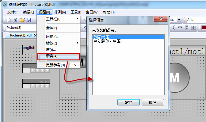 · 画面语言:画面中对象的显示语言,