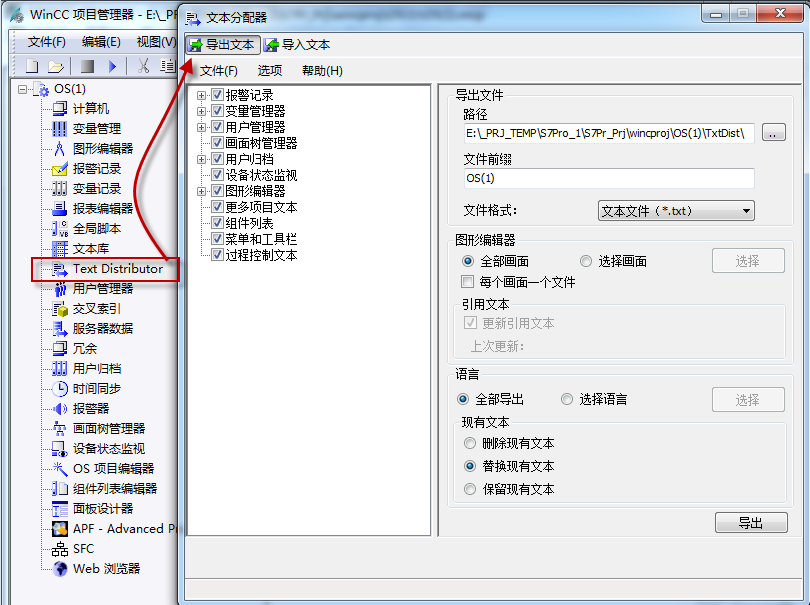 通过Text Distributor可以实现OS 文本库内容的导出为文本文件,也可以将处理过的文本文件导入到OS文本库中。导出命令如下所示: