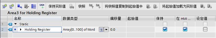 图10 创建存放MODBUS 保持寄存器数据的数据块