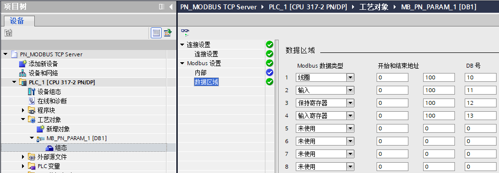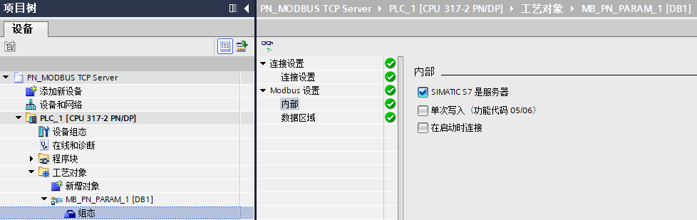 3.配置S7-300单站系统通过CPU集成PN口作为Server进行Modbus TCP通讯