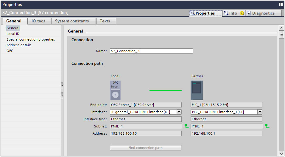 - 伙伴:SIMATIC-ROOT-OTH (是固定的,每个连接都一样,是单边连接,意味着虽然在博途Step7里配置此连接需要将PC站与PLC配置在一个项目中,但配置完S7连接,仅PC站需要下载或导入配置数据)