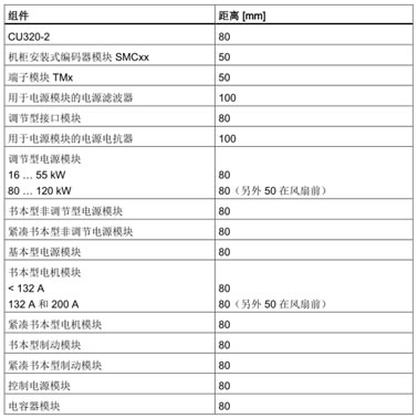 (3) 装置型功率部件散热时上下预留所需空间,参看表1-6