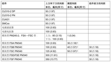 (1) 书本型功率部件的散热时上下预留所需空间,参看表1-4
