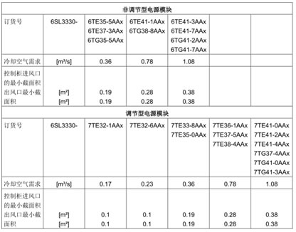 表1-15书本型电机模块的通风量需求