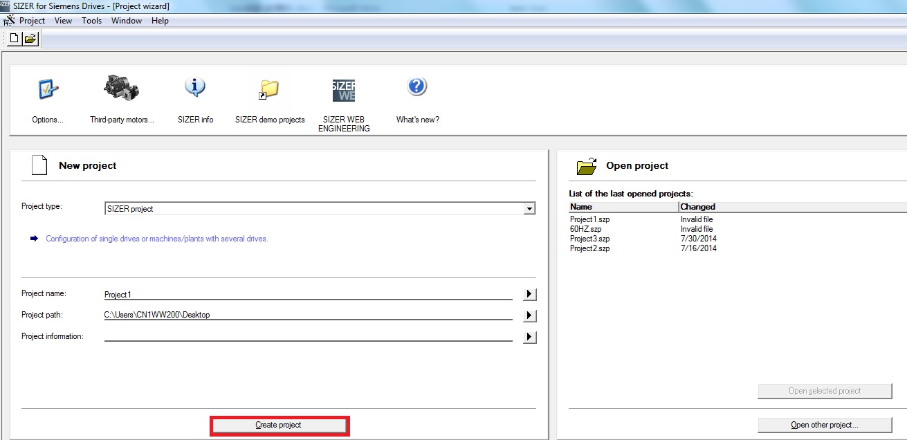 双击SIZER软件图标,创建一个新项目: