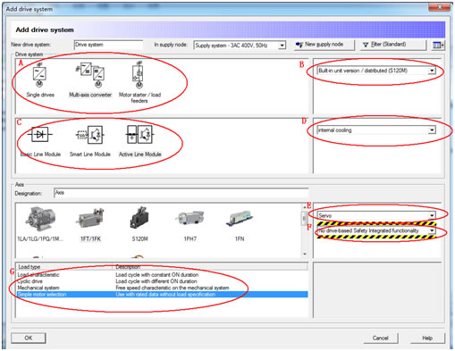 A、驱动系统类型:单轴、多轴、启动器,对于本方案则选择多轴驱动系统;