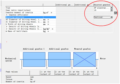 选择与电机直接相连的减速机的类型、减速比、减速机的安装方式等。 |